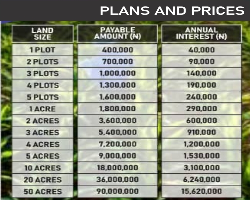 YOU CAN PAY AS LOW AS 20K MONTHLY AND OWN THE LAND IN 2 YEARS.